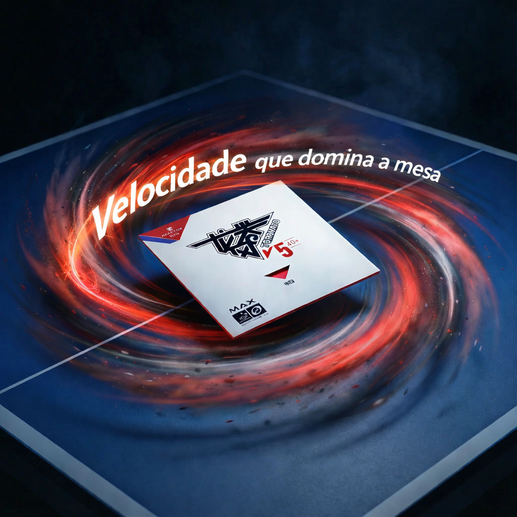 A aderência pegajosa da Tornado V5 gera topspins profundos, loops carregados e trajetórias curvas que “afundam” na mesa. Isso aumenta sua margem de segurança e faz o oponente errar mais, mesmo quando consegue tocar na bola.